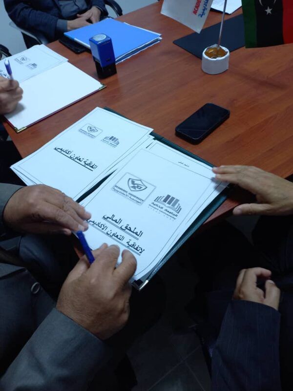 الجامعة الأكاديمية و الجمعية الليبية للبحوث والدراسات العلمية توقعان اتفاقية تعاون بحثي لتعزيز الابتكار العلمي في ليبيا.